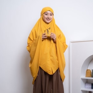 Alif Mukena Mini Travel kekinian yang anti ribet, ringan, mudah dibersihkan.
